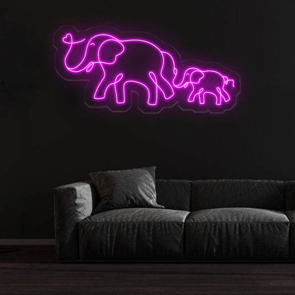 Elephant Neon LED Sign – Color-Changing Wall Art for Nursery Decor, Featuring Mother and Baby Elephants