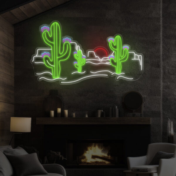 Desert Cactus Neon LED Sign, Southwestern Cactus Neon Light, Customizable Neon Wall Art for Bars or Homes