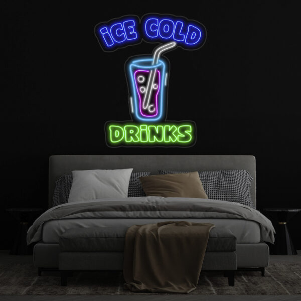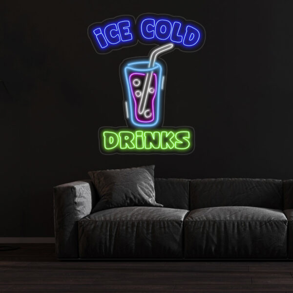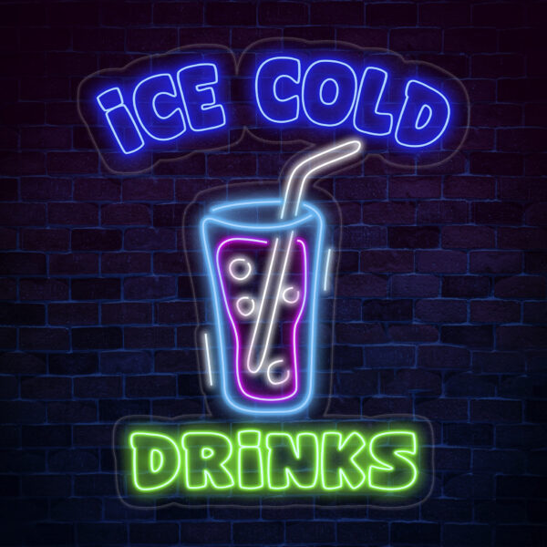 Ice Cold Drinks LED Neon Sign, Custom Beverage Neon Light, Coffee Shop Wall Neon Decor, Business Light Art