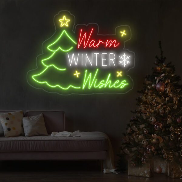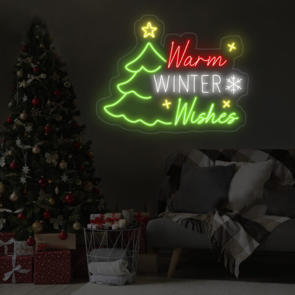 Personalized “Warm Winter Wishes” Neon Light – Color-Changing LED Sign for Christmas and Holiday Party Decor