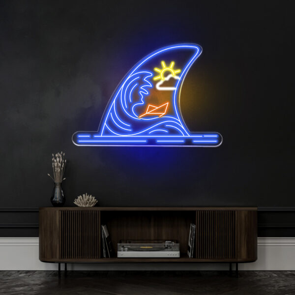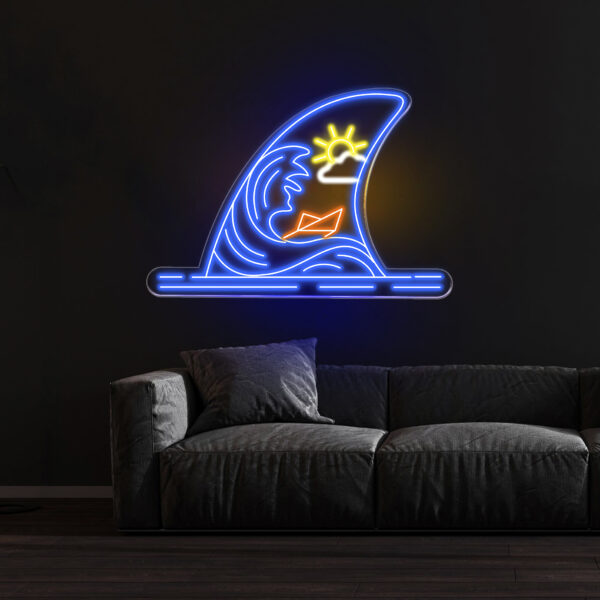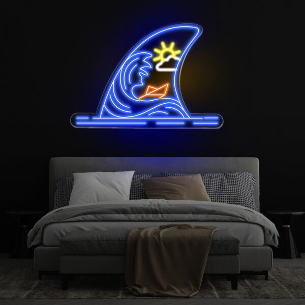 Sunny Ocean Waves Neon Sign, Paper Boat Shark Fin LED Light, Coastal Decor, Beach Bar Sign, Ocean Themed Neon Light, Nautical Home Decor