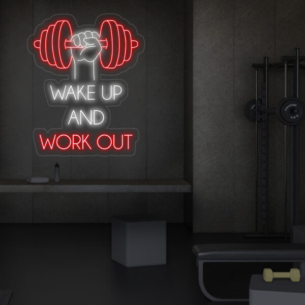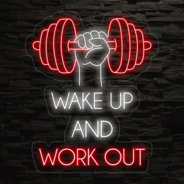 Wake Up & Work Out Neon Gym Sign, LED Fitness Light, Workout Room Decor, Bodybuilding Wall Art, Neon Light for Home Gym